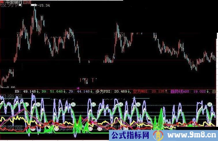 趋势线均线ADXR:(趋势线ADX+REF(趋势线ADX,M))/2,linethick2;