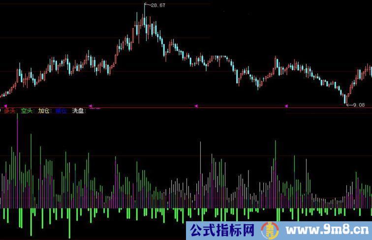 空头:STICKLINE((CLOSE < MA(CLOSE,30)),0,VOL,4,1),color00FF00;