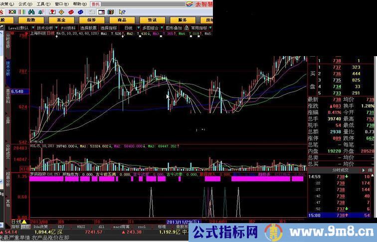 {梦鸽寄语:(指标名:★分时作为!)此指标就是分时指标:只用于一分钟K线和分时图,日K线不用(专门监视庄家行动变化)同时也可用于买入信号观注点!}