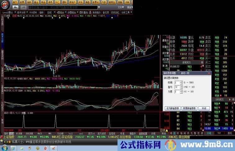 启动一阳指标由于设置了三个可调节参数,因此也就具有更大的可塑性,虽然只是一个公式,但却可以实现几十,几百,几千个公式的功能。