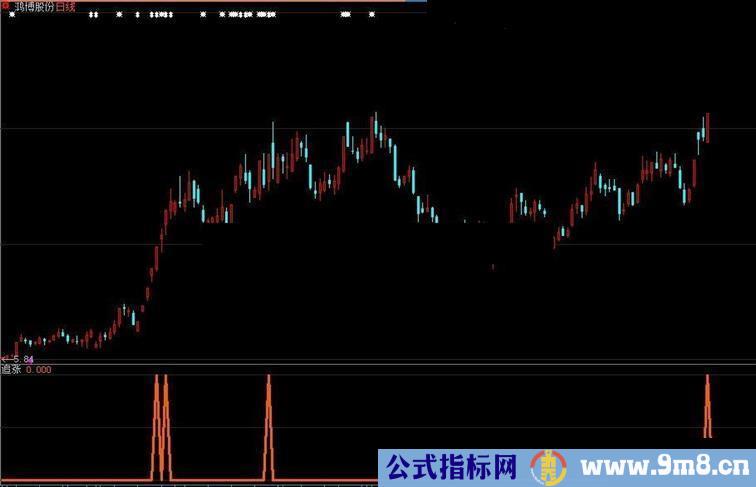 追涨:IF((((((CLOSE / (REF(CLOSE,1))) > 1.04) AND (CLOSE = HIGH)) AND ((VOL / (REF(VOL,1))) < 1)) AND (a19 > 0)),2,0),linethick3,Color005AFF;