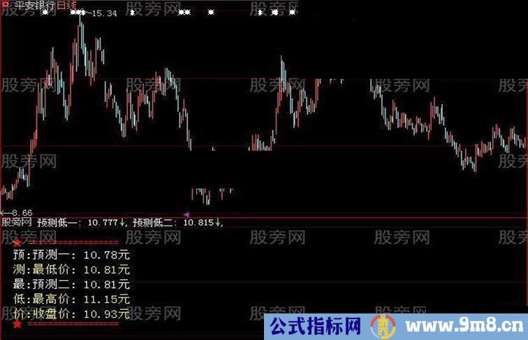 DRAWTEXTABS(15,30,'预:预测一: '+NUMTOSTRN(预测低一,2)+'元'),COLORffFFFF,linethick2;