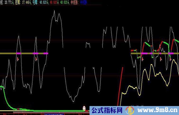中线跌:STICKLINE(EMA((V6-V8)/(VA-V8)*100,8)>0 AND EMA((V6-V8)/(VA-V8)*100,8)-EMA(EMA((V6-V8)/(VA-V8)*100,8),5)<0,49,50,15,0),ColorFF0000,linethick6;