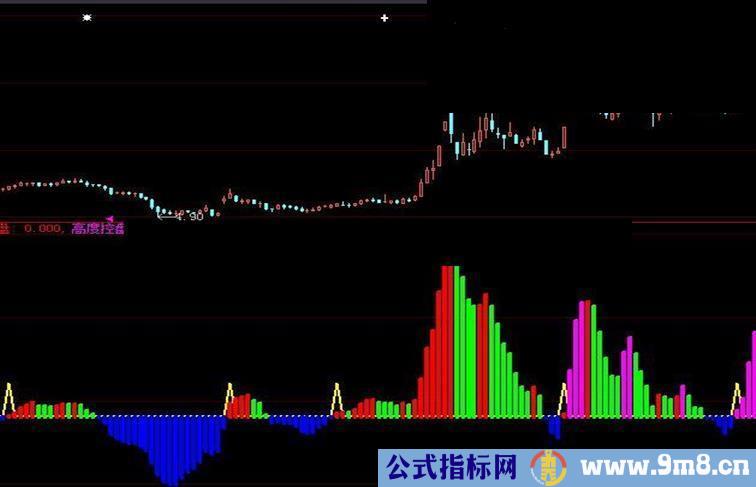 有庄控盘:IF(控盘>REF(控盘,1) AND 控盘>0,控盘,0),linethick0,COLORRED ;