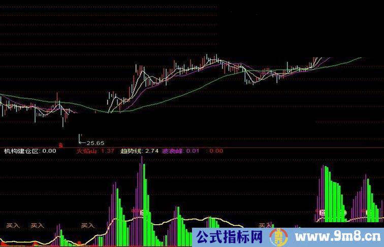 火焰山:EMA(IF(LOW<=VAR7 AND 趋势<40,(VAR11+VAR12),0),3)/618,COLORRED,LINETHICK2;