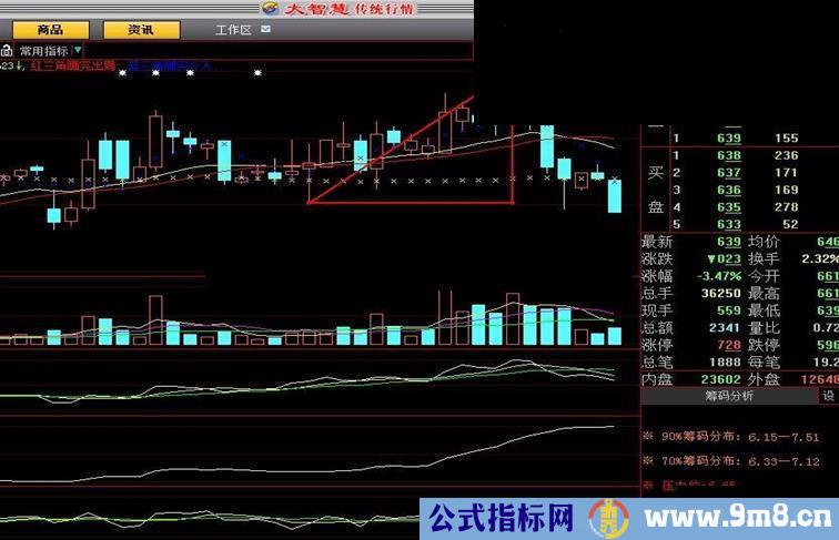 指标用法:紅三角画完出局;
