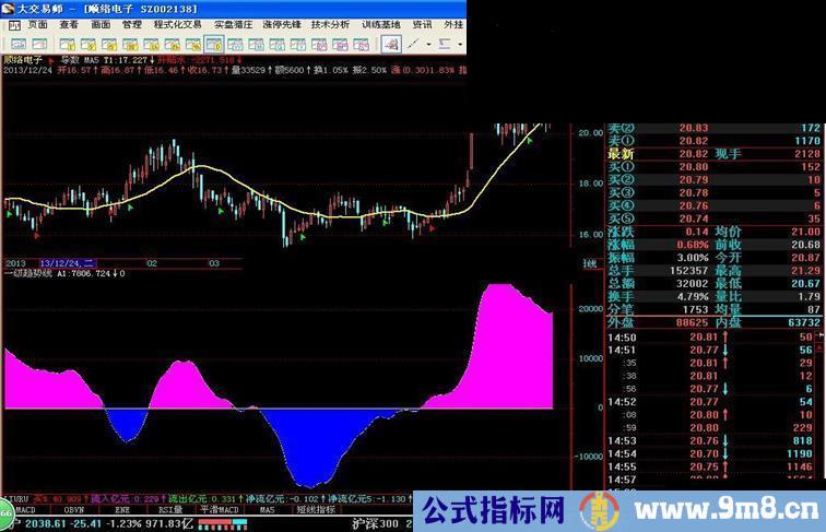 一级趋势线原用来做期指的单边行情所用,本人所编,现用来做股票,同样好用,主要根据量的原理,价格上涨为正量,价格下跌为负量,求和,然后平滑处理,此中量的处理,还是比较新颖少见的,希望能给你带来量的新的思路,0上的爬坡段为最安全的阶段,成功率高。公式没加密,指标高手可调节参数,希望能给大家带来好效益。 飞狐的公式1,大智慧的公式2。