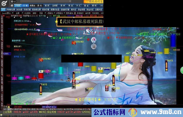 把背景图片888改为BMP格式,背景图片名字叫csfr.bmp,放:/理想大智慧综合版(13614)/USERDATA/bmp下,指标就会出现美女背景!