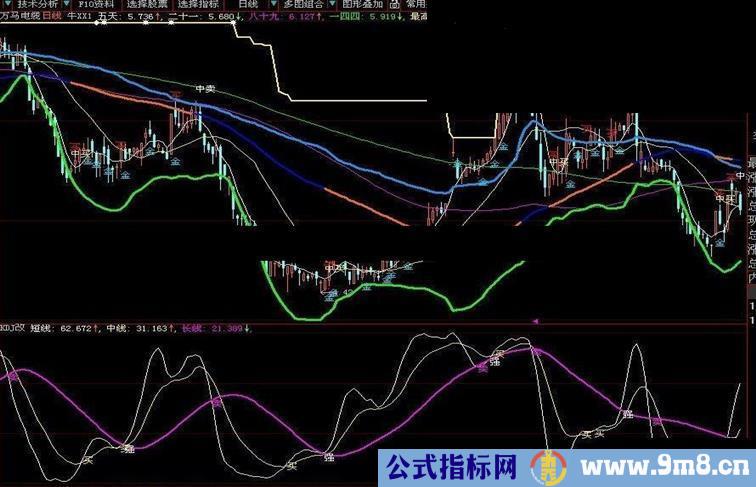 DRAWTEXT(CROSS(长线,短线),长线-0.03,'卖')