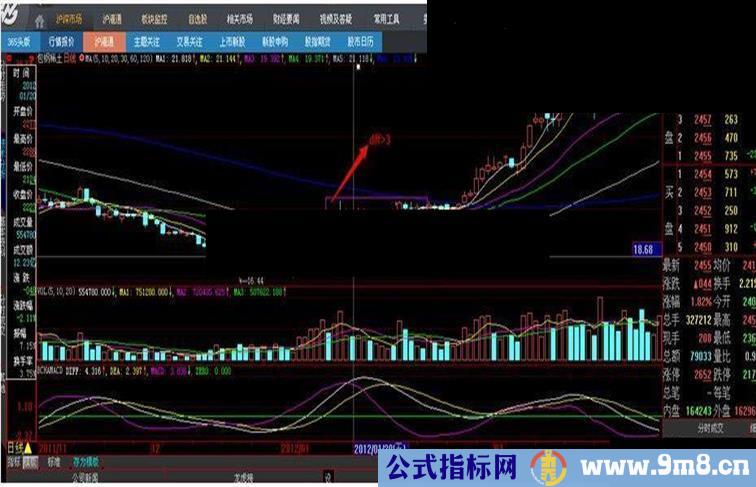 公式使用法则:DIFF>2 或者 DIFF<-3,为买入的良好时机。