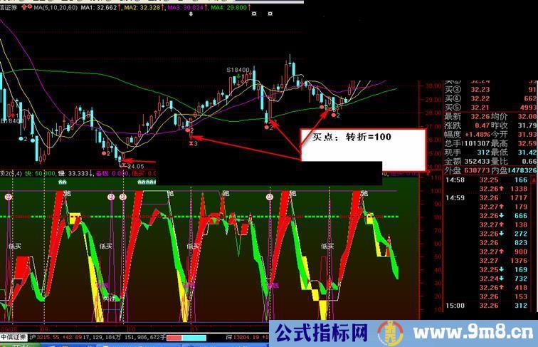 低买:IF(快=0 AND BETWEEN(慢,1,20),50,0),COLORRED,LAYER0;