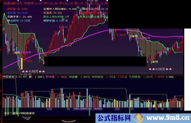 防守量:((MA(换,6)) + (MA(换,12))) / 2,linethick0;攻击量:防守量 * 1.2,linethick0;