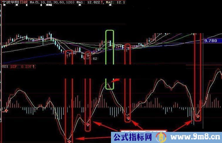 DRAWICON(CROSS(DIF,DEA) AND DIF>REF(DIF,1) AND DEA<0,DIF-0.02,7),ALIGN1;