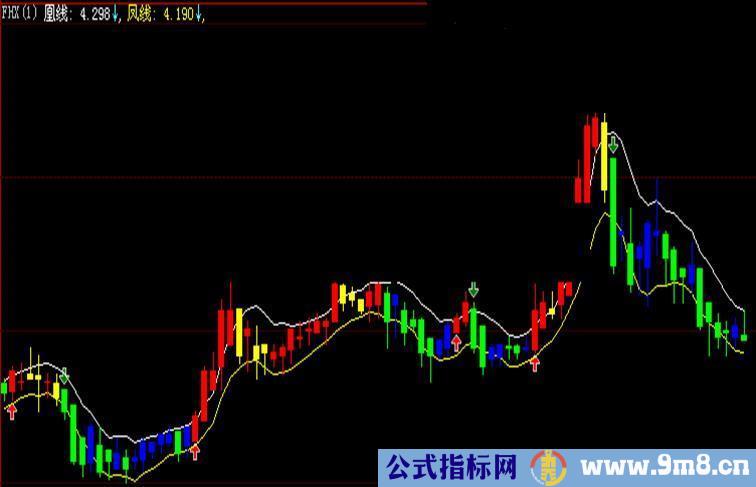 STICKLINE(xclose>xopen and var1>var2,xclose,xhigh ,0.5,0 ),colorblue;
