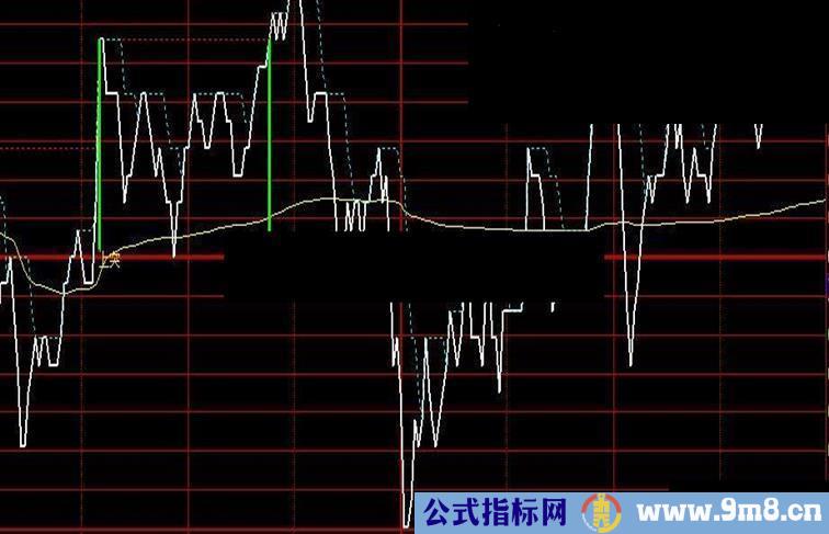 STICKLINE(FILTER(CROSS(C,REF(JGPT,1)),10),C*0.99,C,8,0),COLORGREEN;