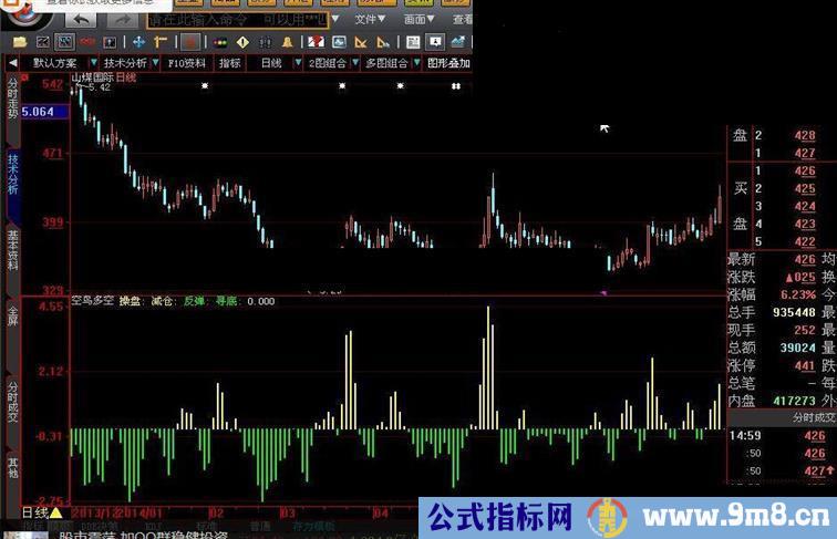 操盘:STICKLINE(多空趋势>=0 AND 多空趋势>=REF(多空趋势,1),0,多空趋势,4,0),COLORYELLOW;