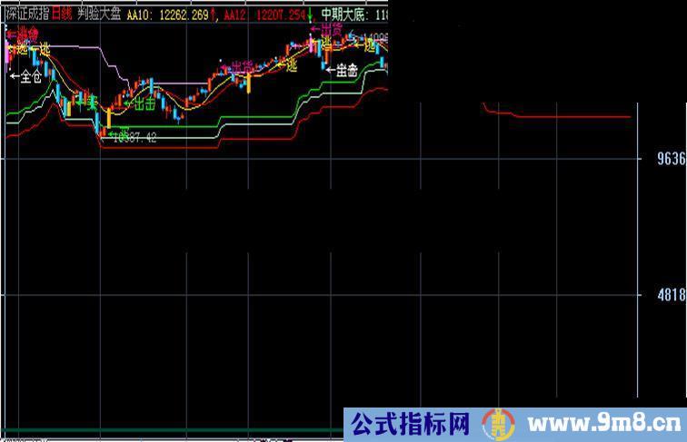 DRAWTEXT(((((LOW <= 上) AND (HIGH >= 短期底部)) AND (CLOSE >= 长期底部)) AND ((CLOSE / OPEN) > 1.03)),(LOW - 0.08),'★抄底'),color0000FF;
