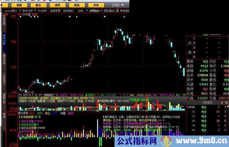 DRAWTEXTABS(395,5,'【操作解盘】 注意:巨量有绿色下部(负交易量)时,说明有主力出逃');