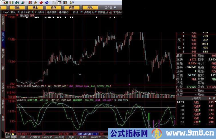 买卖力度: SMA(VAR2,5,1),COLORGREEN;