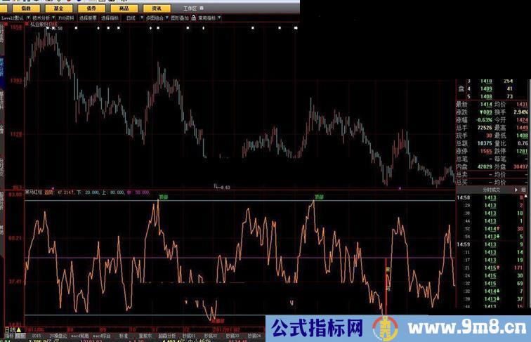 黑马红柱大智慧(通达信指标的名称叫:稳赚不赔)是副图指标,