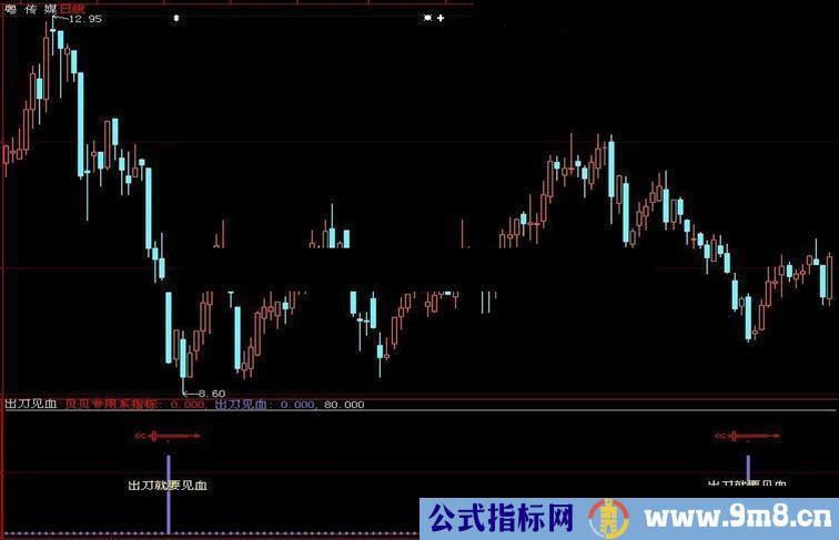 出刀见血:if(SMA(Var94,13,8)<=5.00,50.00,0),colore66878,stick,linethick3;