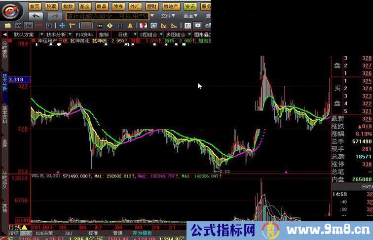 乾坤线:(C-EMA(C,21))/17+EMA(C,21),COLORYELLOW,linethick2;