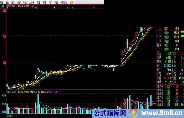 STICKLINE(买涨>0,h,l,0,1),colorYELLOW,linethick2;