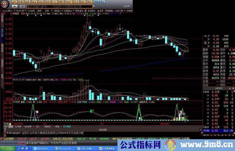 极品底:IF((MA(C,5)-C)/C>0.04 AND (MA(C,10)-MA(C,5))/MA(C,5)>0.04,23,0),LINETHICK2,COLORFF00FF;