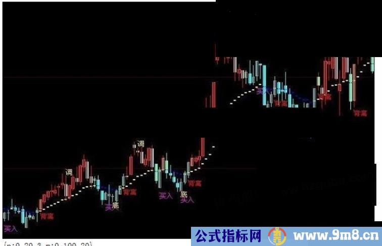 DRAWTEXT(CROSS(J,REF(J+0.01,1)) AND X AND J<20,L*0.98,'买入'),colorff00ff;