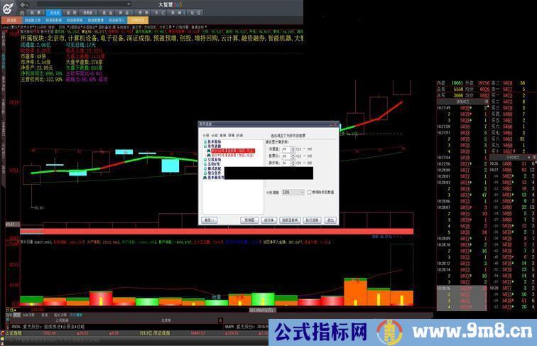 股票特征一:趋势向上、涨跌有量。(K线运行整体趋势向上,股价步入拉升区,股价意欲拉升;60分钟周期下倍量柱、多倍量柱频现,托起并抬高股价;股价下跌时多为快速缩量,但回调不破操作线。)