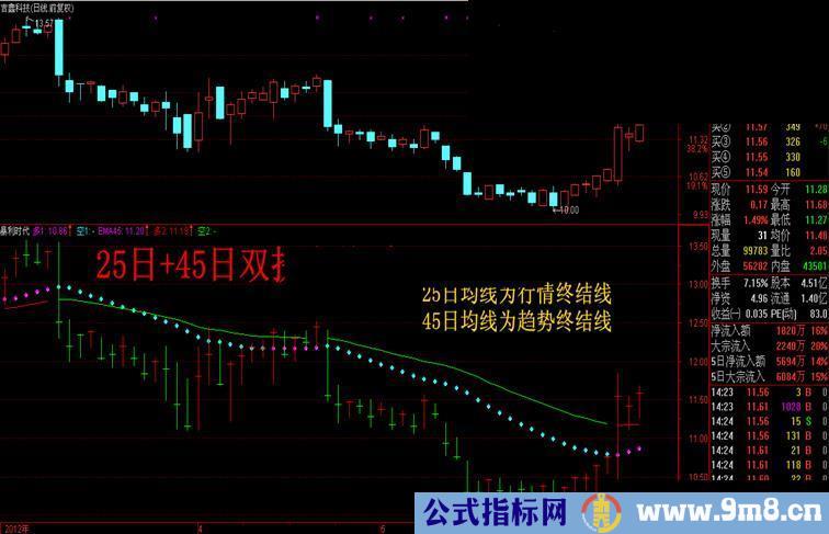 多2:IF(EMA45>DD,DD,DRAWNULL),COLORRED;