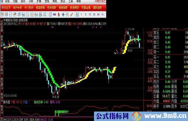 短线反弹:IF(CROSS(个股,9),50,0),STICK,LINETHICK3,COLOR00FF00;