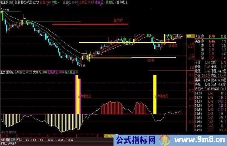 DRAWTEXT(FILTER(VARF=1,3),25,'主力通测底'),COLORRED ;