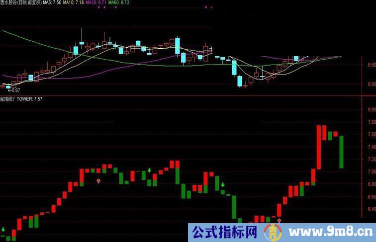 6、宝塔线在操作中要当成短期指标使用,用时配合RSI、KDJ和量能才能运用好。