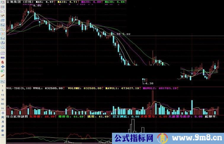 绿持币:IF((A3 > A5),A5,A3),COLORGREEN;