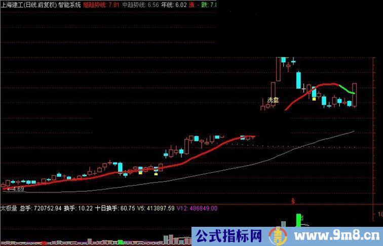 优化太极量(源码,副图,附图) 增加5.10日量线 和换手,用法简单,效果明显