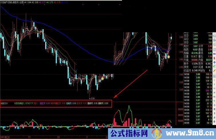 走牛天:BARSLASTCOUNT(N日内净流入>0),COLORRED;