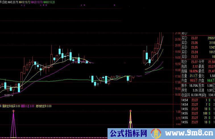 DRAWICON(绝对的主升>0,0.6,9);