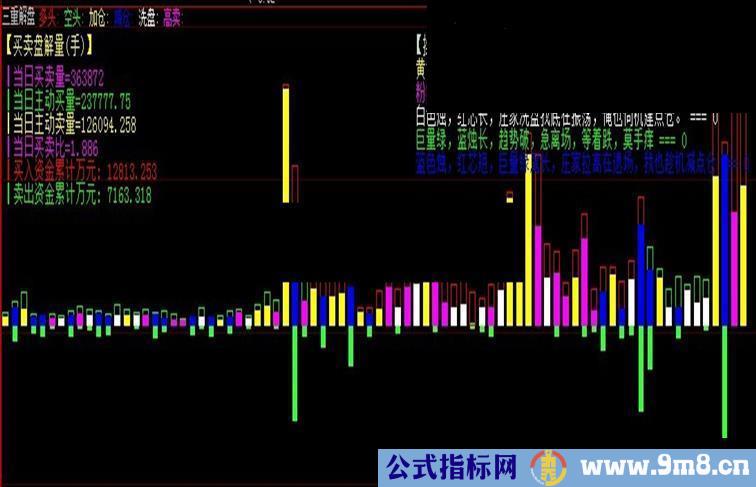 于是我就有了机会尝试用这两个新指标把大智慧的三重解盘完美地再现在了通达信软件上。