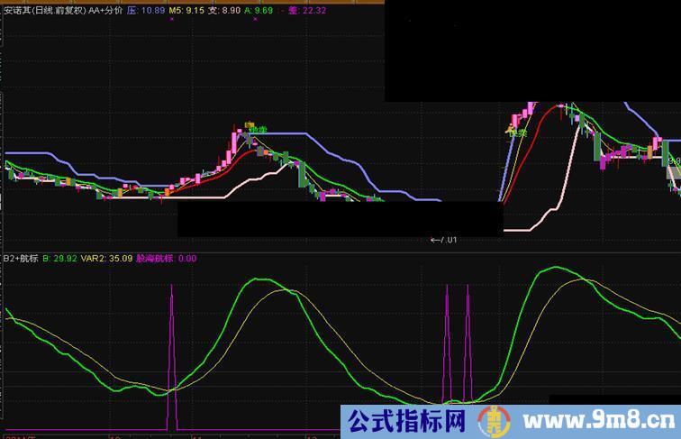 股海航标:IF(CROSS(B,VAR2) AND B<40,50,0);
