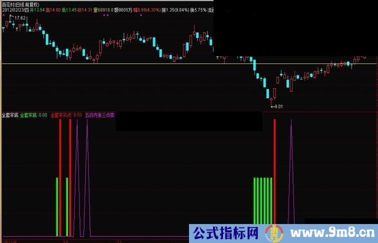 全套牢买点:REF(全套牢底,1)=1 AND 全套牢底=0,COLORRED,NODRAW;