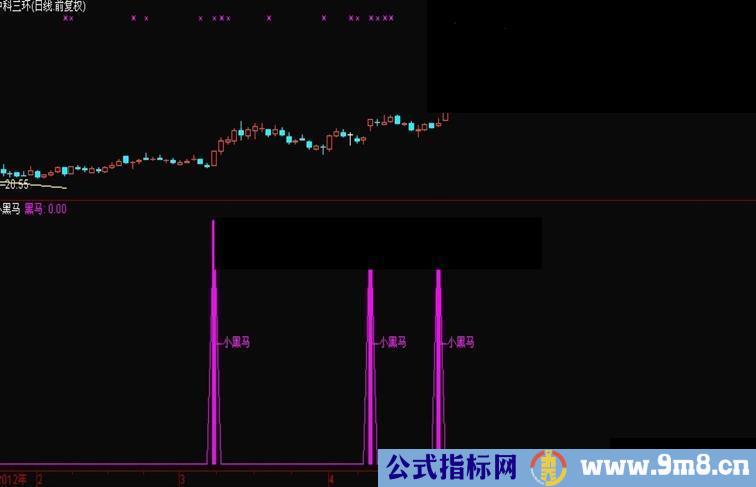 黑马:(MACD0>REF(MACD0,1)*2.5 AND MACD0>15),COLORFF00FF;