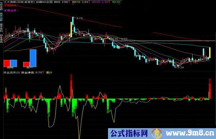 STICKLINE(资金净流>0,资金净流,资金净流,4,0),COLOR0000FF;