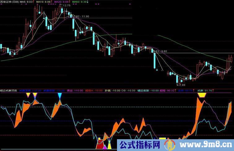 先别抱太多的幻想,还是踏踏实实的做好自己的功课吧。要想获得利润,就得打好寻找顶底的功夫,综合了以前的资料进行了重新组合(效果还算可以,献丑了),现奉献一个《威廉锯齿顶底》副图指标,协助大家能较好的判断顶底的位置(只能参考,神仙也甭想真正抓住顶底的准确信号!)。其中,将广泛使用的威廉指标稍加变革,配上锯齿波段(此指标短线操盘挺好用),共同扑捉顶底信号。期待大家能有个好的收获!!!