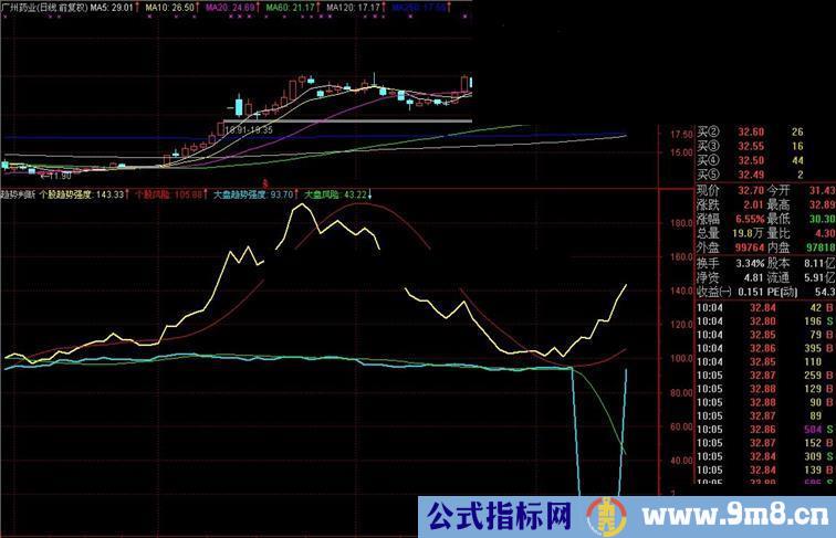 个股趋势强度:C/MA(REF(C,18),18)*100,COLOR0BFFFF,LINETHICK2;