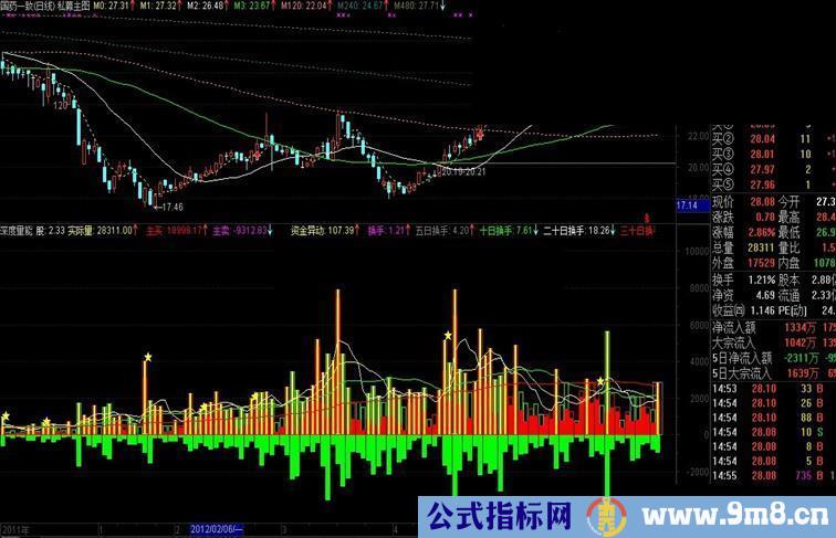 预测量:STICKLINE(IF(DYNAINFO(7)=CLOSE AND DYNAINFO(10)=AMOUNT,VAR1,VAR2),VAR1,0,7,1),COLORGRAY;