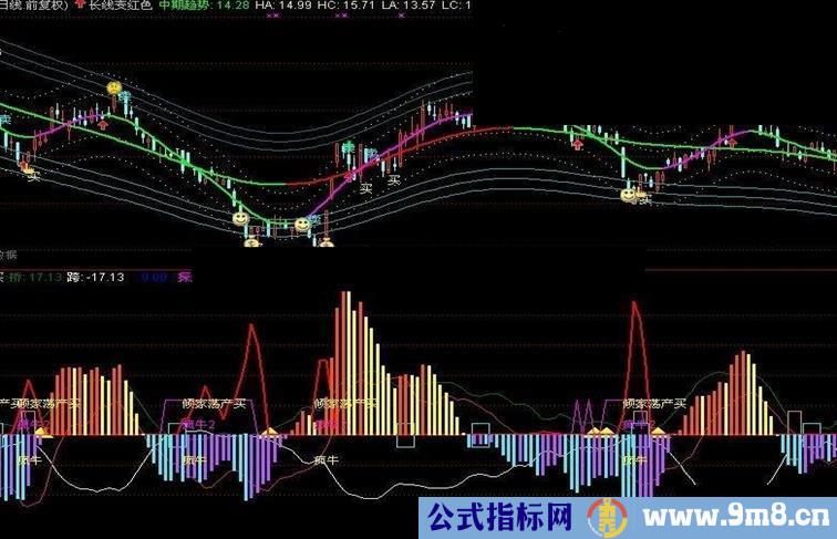 骤雨初晴:=ABS(EMA(I,13.3)-18)/WINNER(CLOSE)*IF((CLOSE-MA(CLOSE,6))/MA(CLOSE,6)<-0.04,1,0);