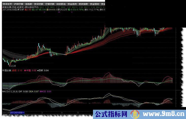 STICKLINE(波段>=0 AND 波段<=REF(波段,1),0,波段,0,0),COLORLIRED;