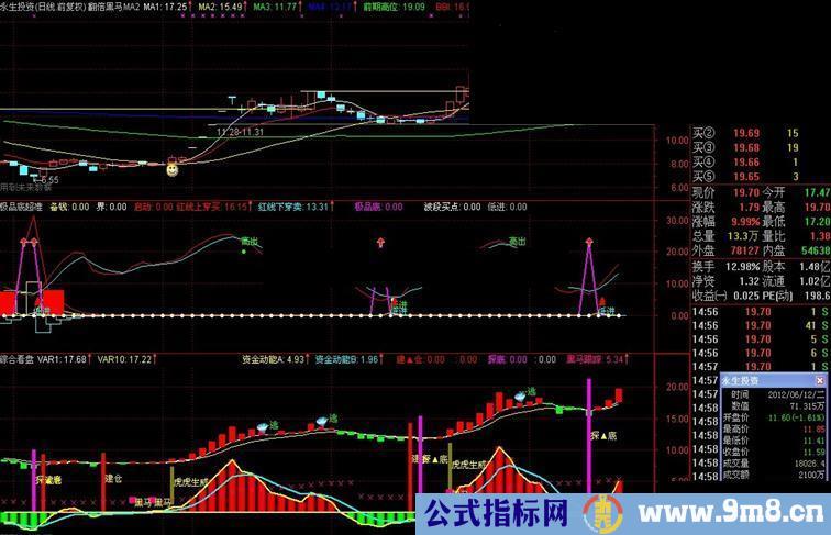 极品底:IF((MA(C,5)-C)/C>0.04 AND (MA(C,10)-MA(C,5))/MA(C,5)>0.04,23,0),LINETHICK2,COLORFF00FF;
