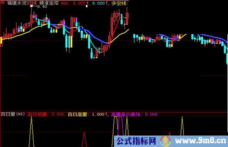 百日地量:0.5*(LLV(VAR2,M)>=VAR2),COLORRED,LINETHICK1;